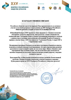 - 2021 - 2025 гг. — участие в ХХI, ХХII, ХХV конгрессах Российского общества урологов.