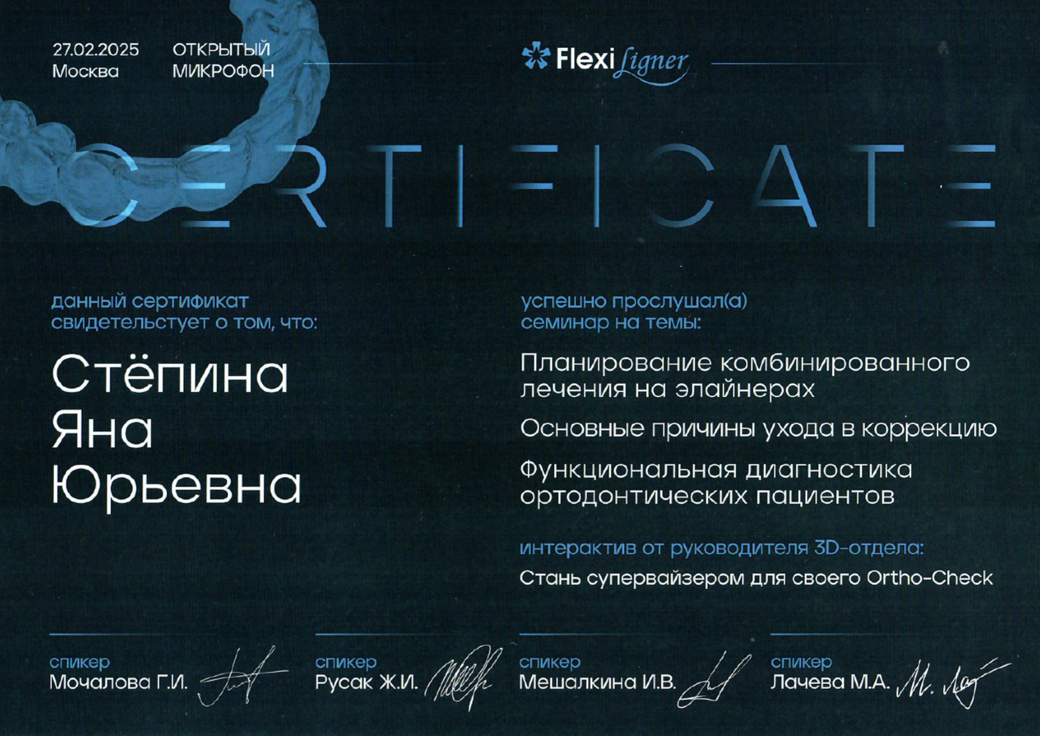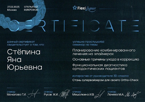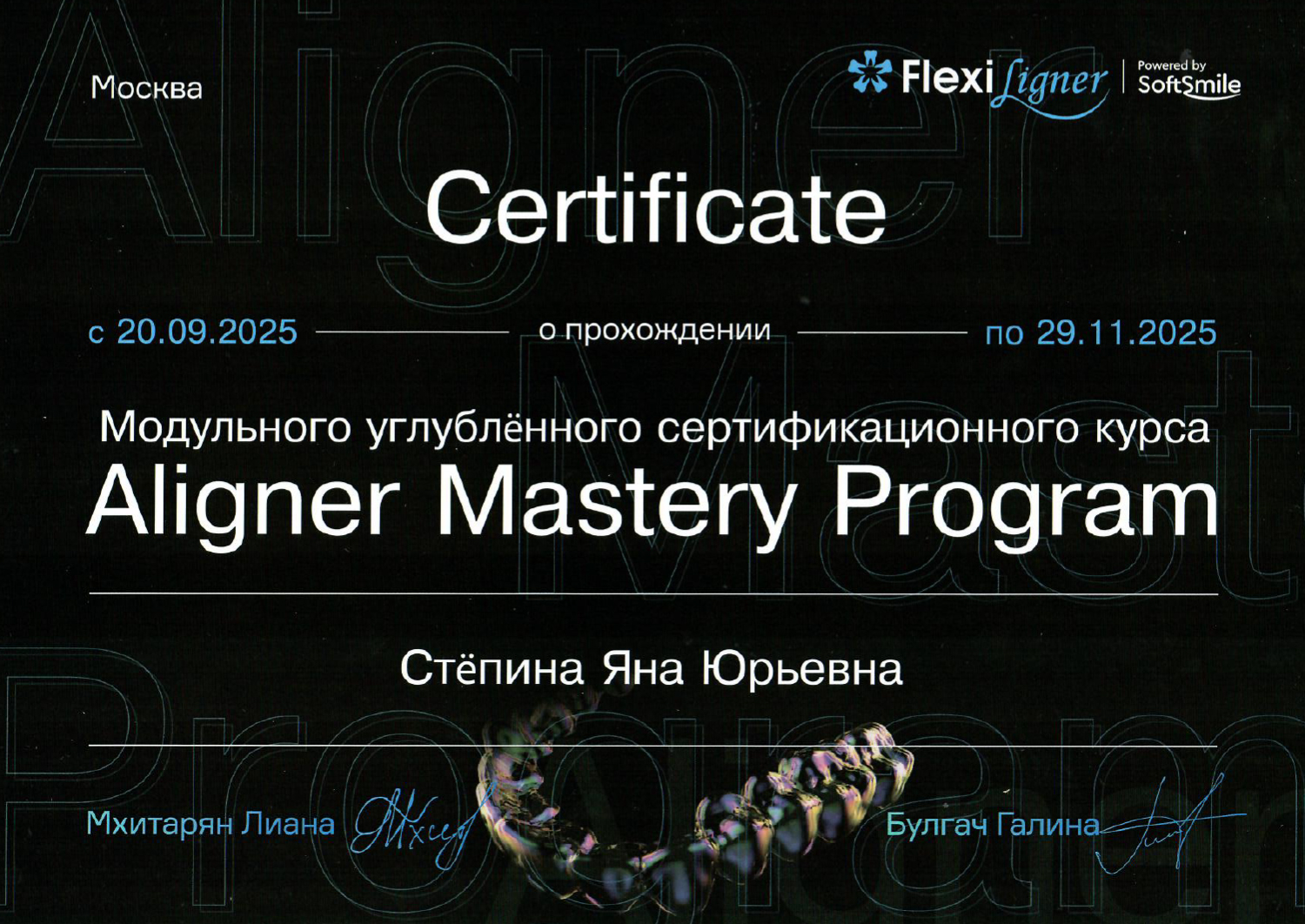 - 2025 г. — FlexiLigner, «Aligner Mastery Program».