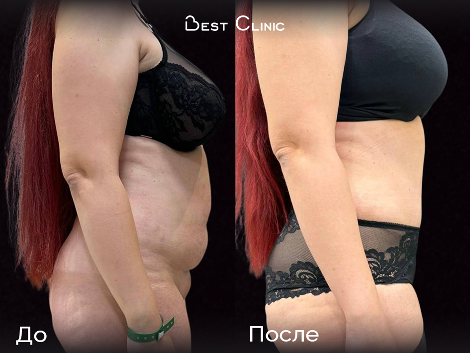 Пациентка обратилась с проблемой свисающего живота и жировых отложений. Выполнена абдоминопластика — живот стал более плоским, контур тела улучшился.