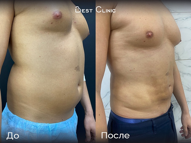 Пациент обратился с локальными жировыми отложениями в области живота и боковых отделов передней брюшной стенки. Проведена липосакция 360 и липоскульптура — удалось создать более стройный силуэт и подчеркнуть естественные линии тела.