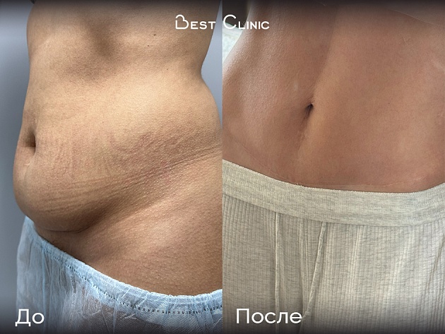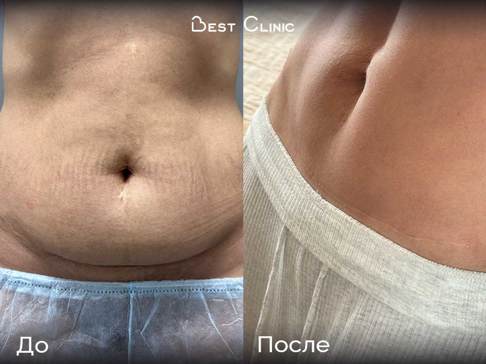 Пациентка обратилась с кожно-жировым фартуком и выраженными жировыми отложениями в области живота. Проведена липосакция поясницы и боковых отделов живота, ушивание диастаза, абдоминопластика и липоскульптура — удалось сформировать ровный контур и восстановить эстетику передней брюшной стенки.