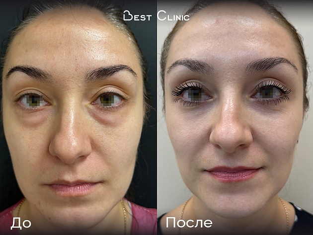Пациентка обратилась с жалобами на мешки под глазами, отеки и следы усталости. Проведена нижняя трансконъюктивальная блефаропластика — устранены грыжевые выпячивания, взгляд стал более отдохнувшим.