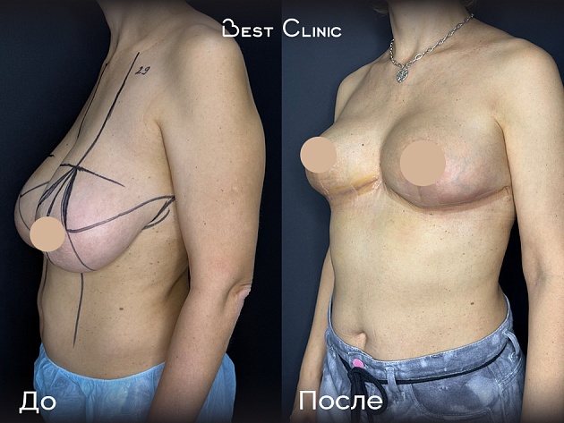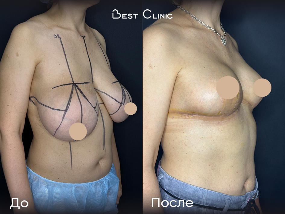 Пациентка обратилась с желанием уменьшить и симметризировать молочные железы. Проведена редукционная симметризирующая мастопексия без имплантов — восстановлена пропорциональная форма и улучшен эстетический вид груди.