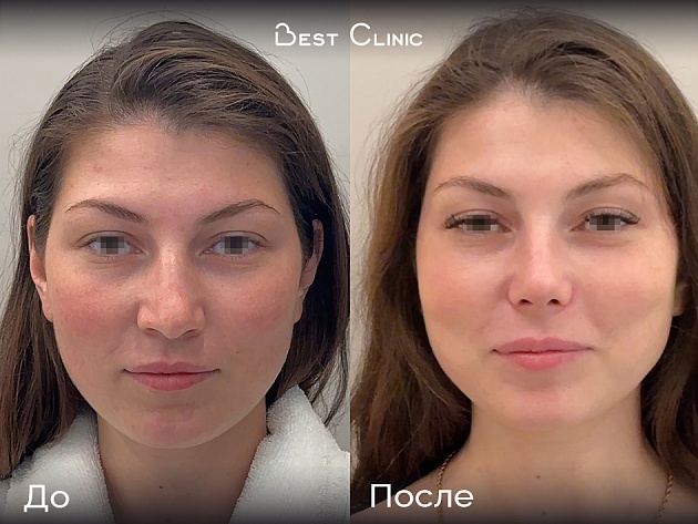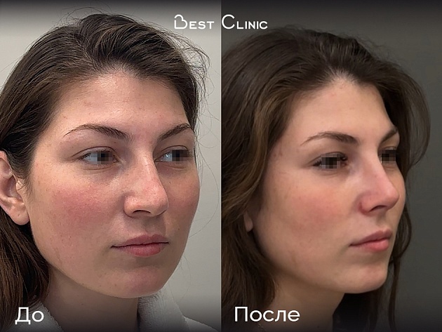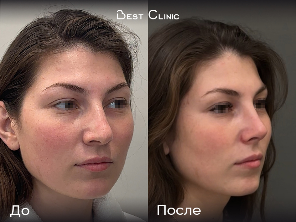 Пациентка обратилась с жалобами на неудовлетворительную форму носа. Проведена ринопластика — удалось откорректировать форму и придать чертам лица гармоничность.